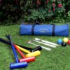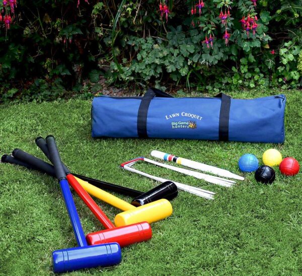 A fun introductory Lawn Croquet set, with 4 brightly coloured wooden mallets and balls, sized perfectly for children. Also includes 6 metal hoops, a wooden winning post and rules and comes packed in a zip fastening bag. The Big Game Hunters Lawn Croquet set is perfect for starting out, designed to get your children into the game and learn using a set designed for their height and age. Once they are older you can then move them onto a full size set. You can also set this set up for your children and as they play their game of croquet, you play yours, either way this great little set is a perfect starter set.