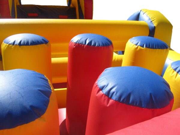 A real popular Bouncy Obstacle Course with open top roof which is a fantastic bouncy for any corporate event as well as fun days etc. This Inflatable obstacle Bouncy course includes a plain but colourful unisex design which can be upgraded to a digital print if required. Includes a 7 ft. platform up & over slide as well as hidden bouncy obstacles such as cross beams, biff & bash, tunnels complete with slip & climb sheets. This now includes extra high side walls. This style Obstacle bouncers are of a manageable weight designed and manufactured in two parts making it easy for transportation as well as storage. Perfect for both boys and girls. This Jumping Obstacle Castle can be made to your specifications i.e. choice of colours, size, style of artwork and can also include your business contact details.