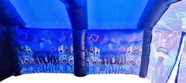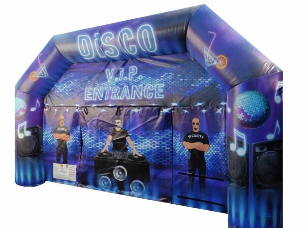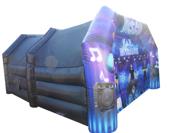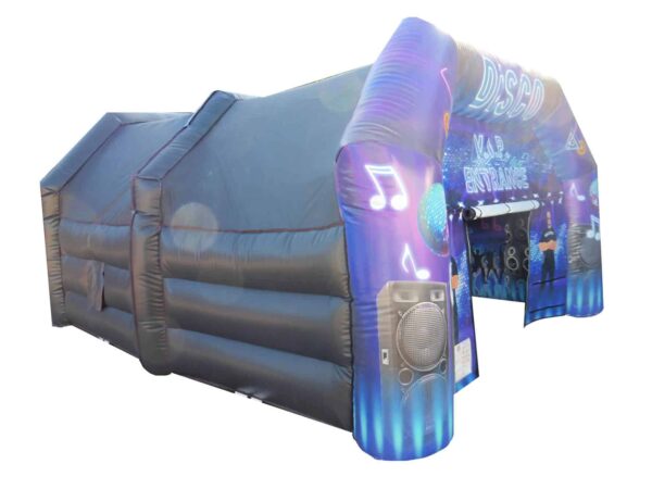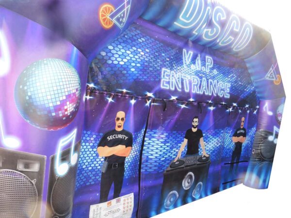 15x20ft Disco Marque for Sale with vibrant digitally printed artwork. This Disco themed artwork inflatable tent which can either be hand painted or digitally printed includes Bluetooth Speaker and disco light so it has the full disco effect for any event.