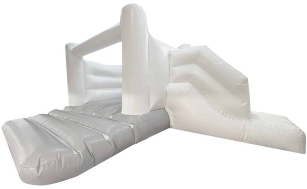 Neutral 4 Post Grey & White Combi Bouncy Castle for sale, features a neutral colour scheme that is especially appealing to both boys and girls. With this design, it is great for children at any event or occasion such as weddings, baby showers, christenings and parties. With its size and low height, it makes this style bouncer ideal for indoor use and low ceiling buildings so always a great inflatable for any occasion at any venue. A popular design by having the slide on the side to provide extra fun.