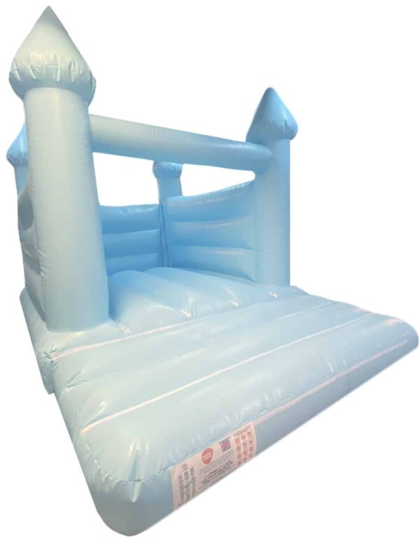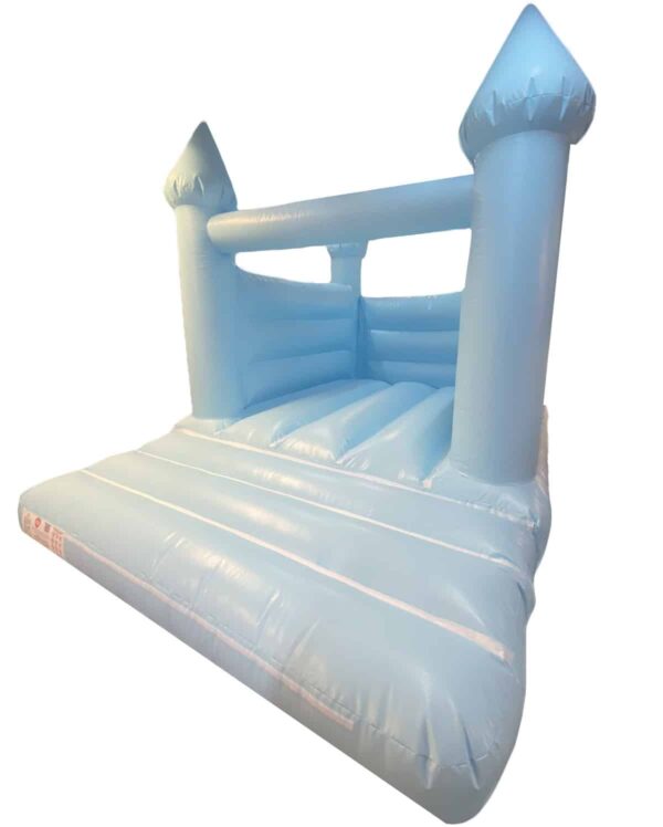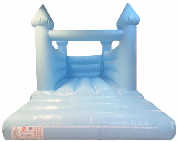 15x11ft Commercial Turret Top Pastel Blue Bouncy Castle for sale. Unique Turret Top design and in a Pastel Blue colour it is ideal for children of any age. This is the perfect Bouncy Castle for any occasion such as birthday parties.