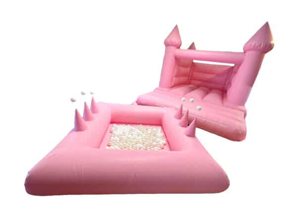 Pastel Pink Turret Top Bouncy Castle & Ballpond Package (15x11ft)