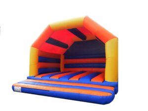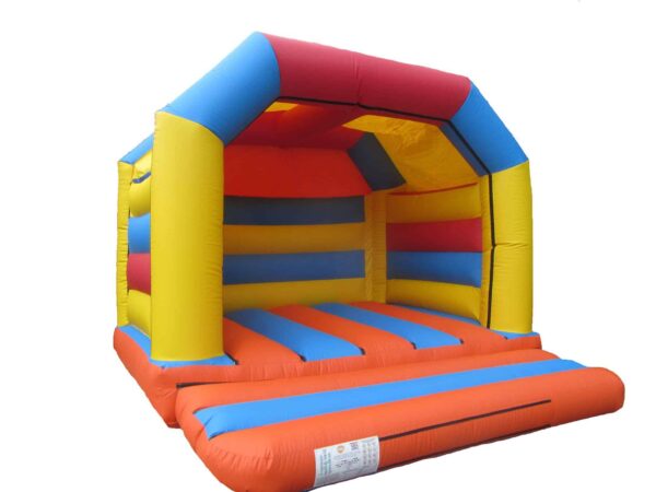 15 x 15ft Plain Adults Velcro Commercial Bouncy Castle for Sale. Unisex colours and plain design so its appealing to both boys and girls of all ages as this bouncer is suitable for Adults and Children. With velcro sections it means you can purchase detachable artwork to instantly change the look of your bouncy castle.