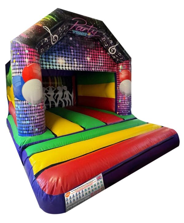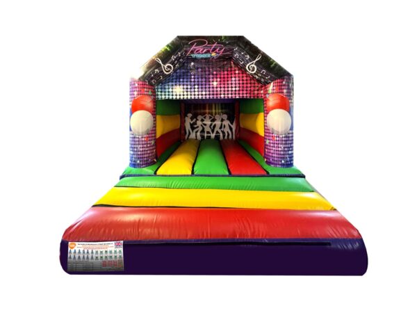 15 x 11ft Commercial Printed Party Bouncy Castle for Sale. Unisex Colours and vibrant digitally printed party artwork which is appealing to both boys and girls. Definitely a best selling bouncy castle and a must have in any fleet.