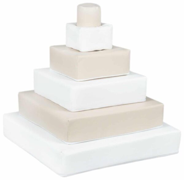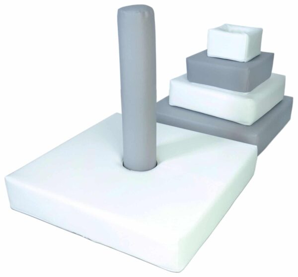 Perfect for playing, exercising and creating obstacle courses or spatial constructions. The building blocks consist of 5 stackable pieces onto a central pole.