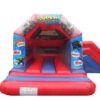 Easily one of the most popular sized Combo bouncy castles to buy which is ideal for back garden use. These style bouncers are a manageable weight which are easy to handle and will fit into the rear of a car. Perfect for both boys and girls. It has digitally printed artwork with superhero theme effect and can be manufactured to your specifications such as colours, size, style of artwork and can also include your business contact details.
