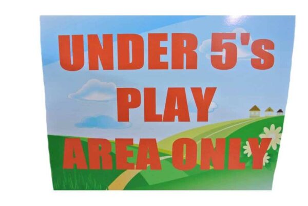 Under 5's Safety Notice for Sale. Ideal to put placed around toddler bouncy castles or soft play set ups to make sure every user is fully aware that no one over the age of 5 should be using or on your items. Gives and very professional look and shows that you are a safety conscious and trusted operator.