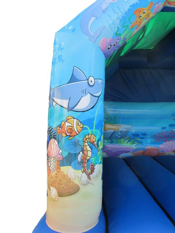 15 x 12 ft Commercial Under The Sea Bouncy Castle for Sale. Very Popular theme at the moment and a great bouncy castle as its appealing to both boys and girls of all ages with this vibrant digitally printed artwork.