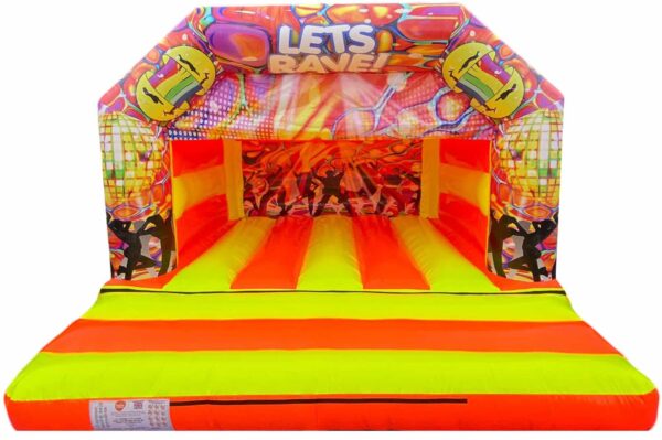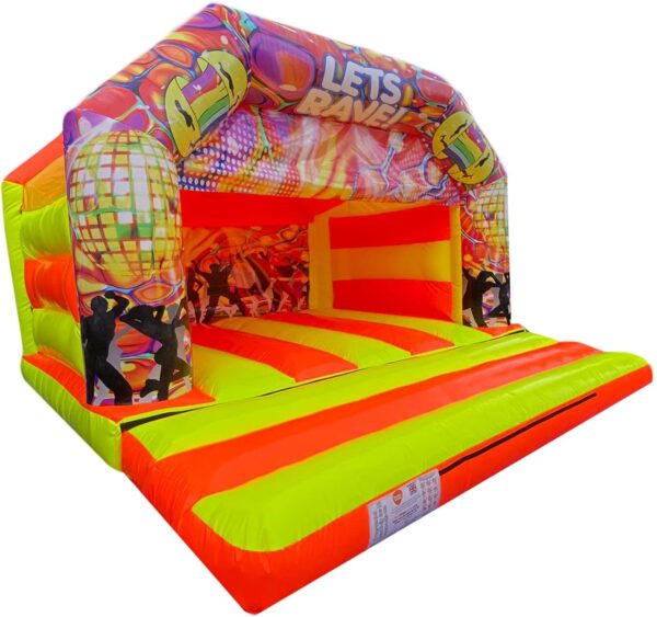 15 x 15ft Commercial UV Rave Themed Bouncy Castle for sale. A massively popular design which is great for boys and girls of all ages. Perfect to add to a growing fleet.